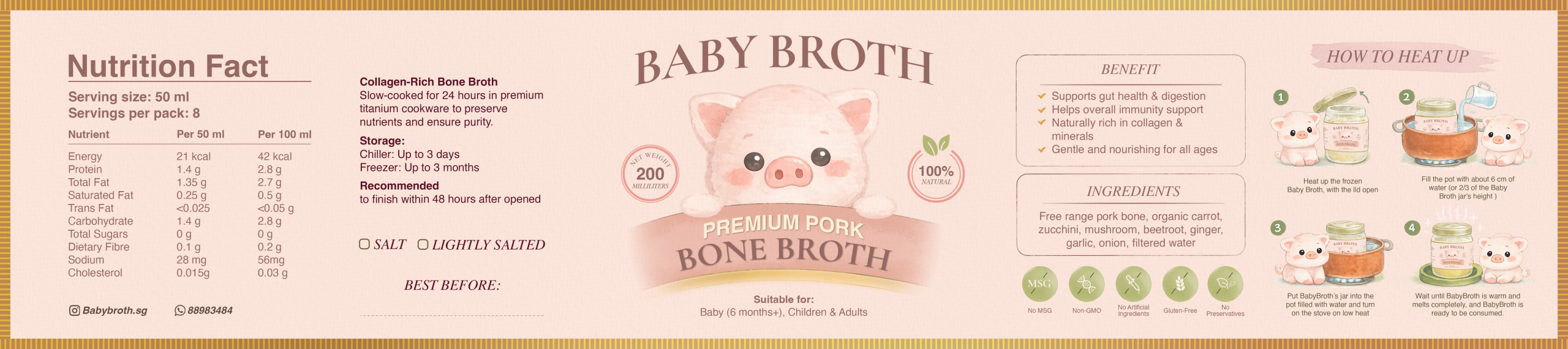 Ingredients: Soft pork bone, organic carrot, zucchini,beet-root, Shitake mushroom, parsley, garlic, onion, ginger, fruit, apple vinegar.